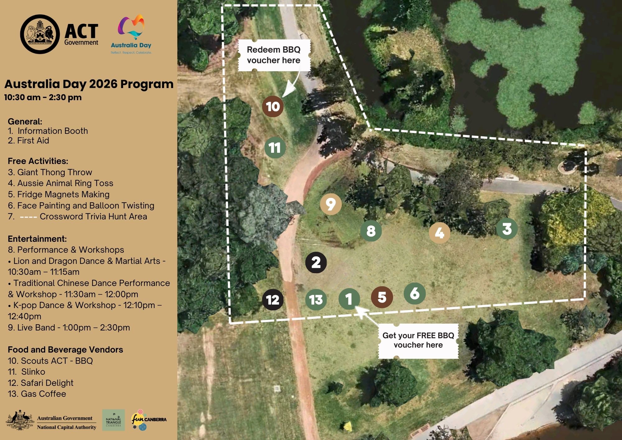 There will be a community sausage sizzle, which will be free for the first thousand attendees and gold coin donation thereafter. There will also be some food options, cold drinks and ice creams available to purchase from food stalls.